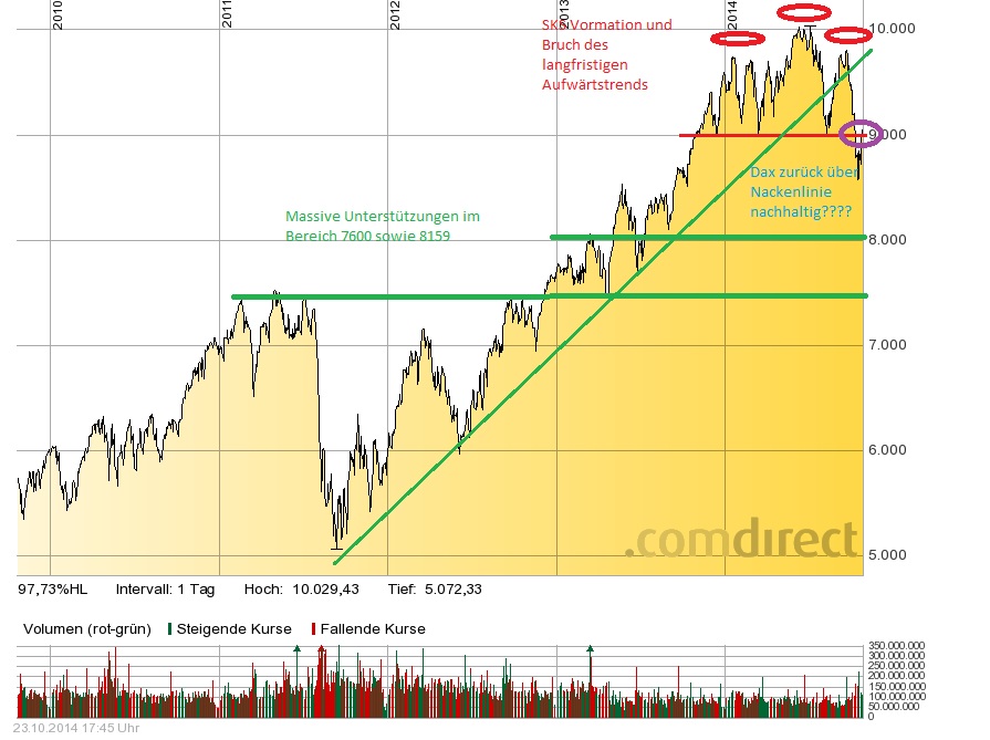 Ich persönlich sag jetzt zum Dax-Verlauf garnix mehr. Man hat keine Chance ihn vorherzusagen. In den letzten Tagen war ich mir so sicher wie lange nicht mehr, dass die Erholungsbewegung spätestens zur Wochenmitte zuende sein würde. Und auf einmal haben wir Donnerstag abend nen Xetra-Schluss von über 9000 Punkten. Der Dax ist seit einiger Zeit eigentlich nur noch wie ein großer Staubsauger der das Geld der Kleinanleger absaugt. Mit seriösem Trading (wenn es das gibt