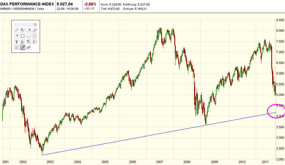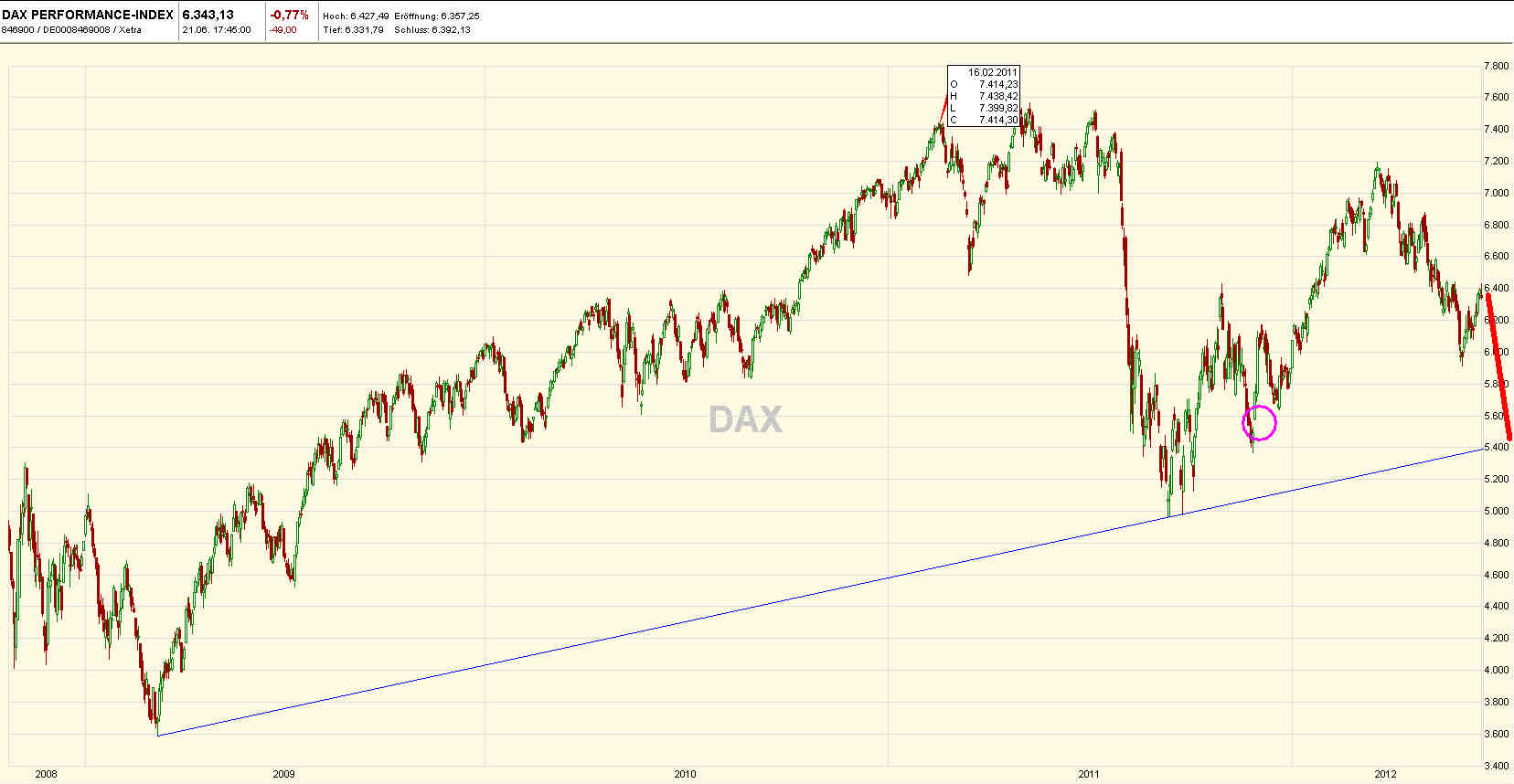 ja liebe Bullen oder Hornochsen, wir sind immer noch im Abwärtstrend und dies nicht erst seit gestern, Schluss mit rosarot und Traumtänzereien ......