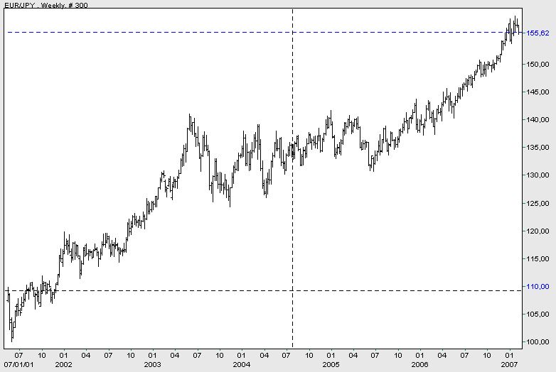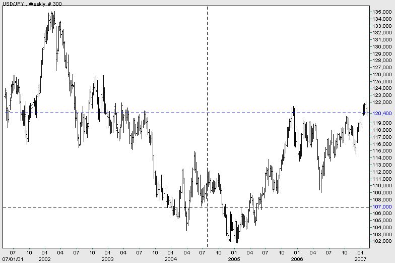 US-Finanzminister Hank Paulson wurde vergangenen Mittwoch im Kongress zu seiner Haltung zum Yen befragt. Er sprach sich deutlich gegen Interventionen verbaler oder realer Art aus. Die Währung werde von fundamentalen Gegebenheiten - er meinte die niedrigen Zinssätze - und von Portfolioverschiebungen bewegt. Was Letzteres betrifft, war seine Analyse stichhaltig. Als ehemaliger Chef der Investmentbank Goldman Sachs kann er das beurteilen und dürfte das LTCM-Desaster hautnah miterlebt haben.