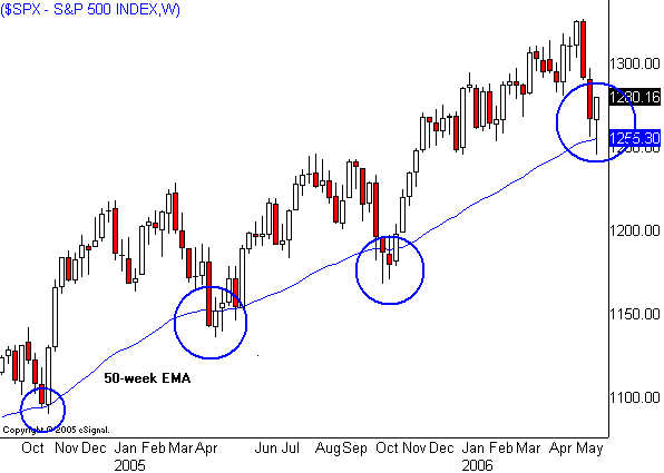 Strength in the Dow and Nasdaq Wednesday and Thursday alleviated the oversold conditions on the daily charts. On Fridays technicians look to the weekly charts, and they have been deteriorating since the peaks in early May.