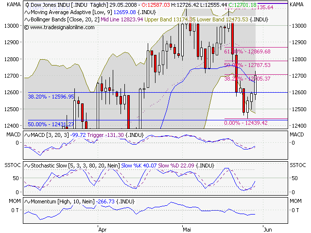 Fazit: Sollte der DOW die 12.400 knacken, könnte es eine rassante Fahrt werden. Realistischer sehe ich eher ein mehrtätiges dahinlümmeln in der Range 12.400 bis 12.600 und nächste Woche dann eher long-orientiert.
