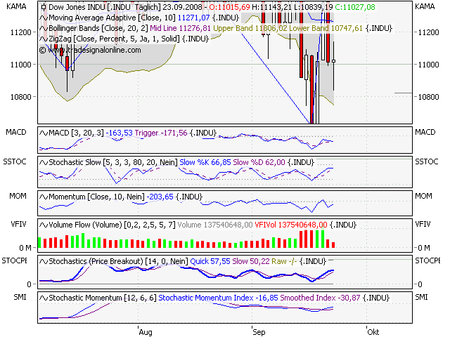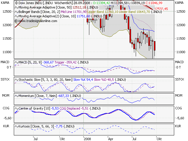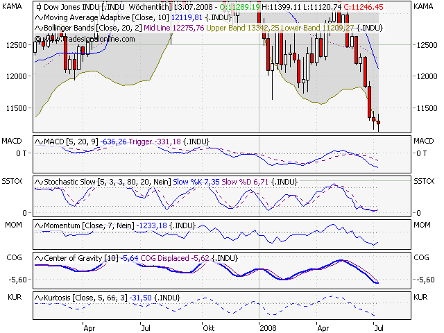Die Möglichkeit einer Erholung sieht derzeit gut aus, auch wenn viele den Weltuntergang sehen. Was würde denn passieren, wenn die US-Börsen richtig runterplumpsen??? Der Normalbürger in den USA hat seine Altersvorsorge über Aktien finanziert, bzw. besteht aus Aktien. 2. Standbein war das Eigenheim, wenn auch nicht sooo mit dem Stellenwert wie bei uns. Das Eigenheim haben bereits viele verloren. Sollten die Aktien auch noch richtig absacken, dann können die USA den Laden dicht machen. Da rechne ich damit, dass es genügend Interessenten gibt, die das verhindern wollen. Fundamental wäre der DOW-Jones sicherlich tiefer anzusiedeln, aber die Börse zeigt ja die Zukunft ;-)