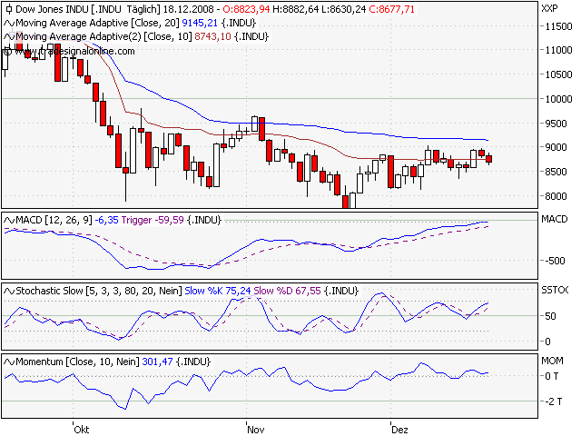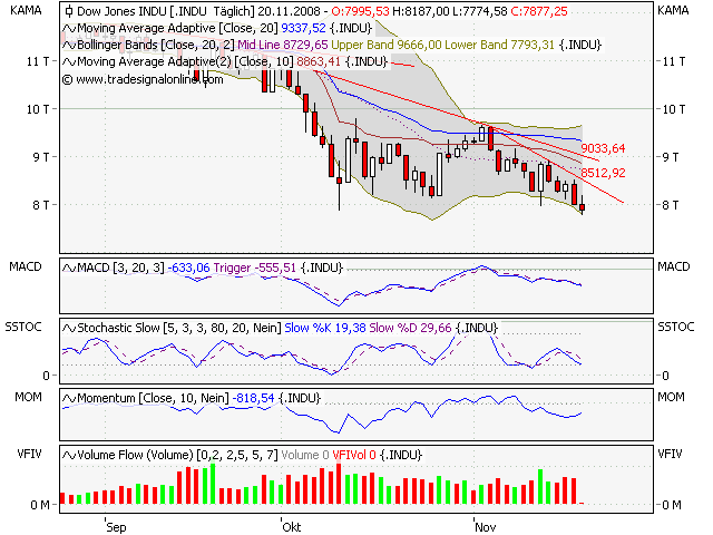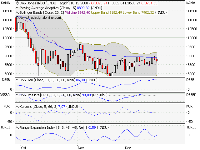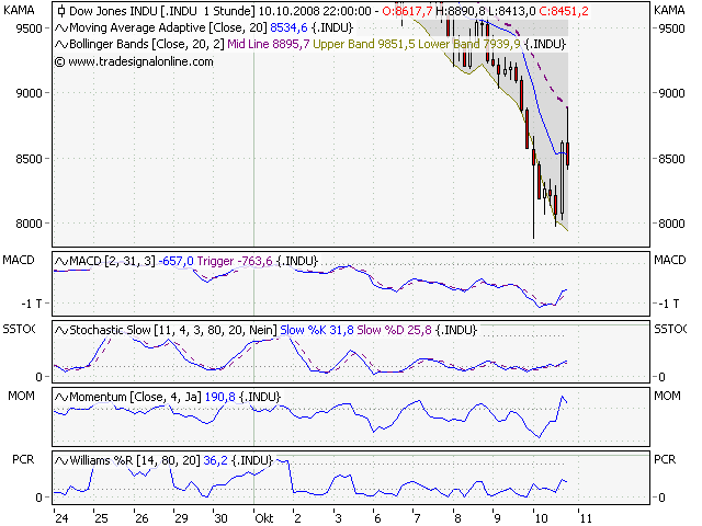 Falls man es schlecht erkennen kann, der DOW ist an der Mittellinie des Bollingerbandes abgeprallt!