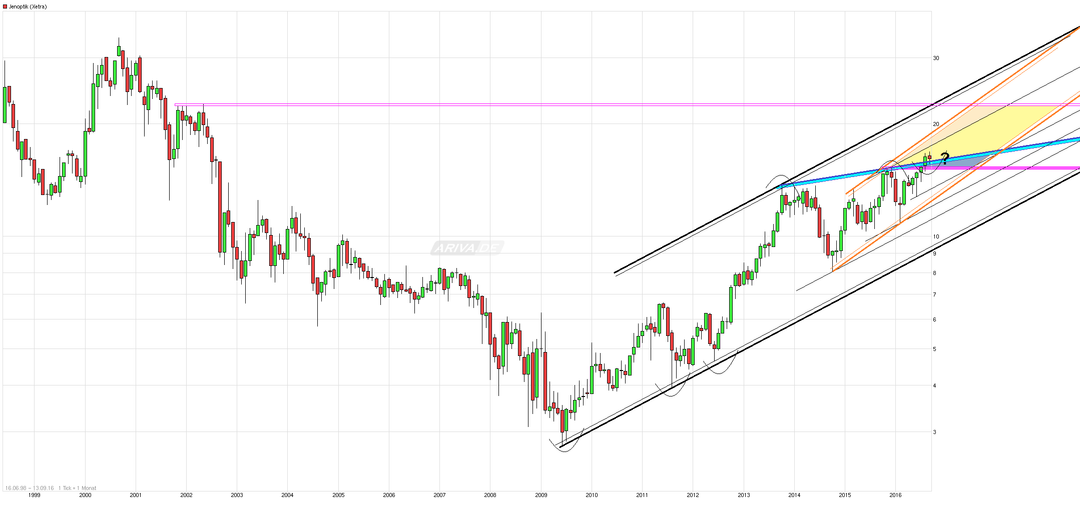 intraday mit 15,38. Damit das Top von 15,31 rausgenommen was man im Dez.15 erreicht hatte. Allerdings heute (ähnlich wie damals) erstmal nur ein intraday Peak, von dem man aber dann doch wieder zurückgefallen ist. Schätze da hatte der ein oder andere Anleger ein Stopp Buy liegen gehabt bei knapp über 15,31 und das hat heute gegriffen. Dann blieben aber etwas die Anschlußkäufer direkt danach aus. Wäre schon schön, wenn man jetzt auf SK über den SK-Ständen von Nov./Dez.15 bleiben könnte. Unschön würde es, wenn es nichtmals gelänge sich über der Region um 14,85/90 weiter zu behaupten, d.h. die Widerstandszone die man jüngst überwunden hat. Schauen wir mal wie es weitergeht. Man scheint wohl den Eindruck zu haben, daß Jenoptik etwas zu konservativ gewesen sein könnte mit seinen bisherigen Prognosen. Die Hj.1 Zahlen und Prognoseupdates werden es dann zeigen müssen am 10. August, ob man sich im 15,xx Bereich (oder gerne auch mehr ;)) weiter bewegen kann.