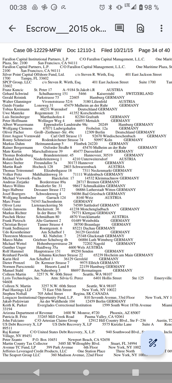 Jetzt finde ich mich nicht in der Liste und frage mich, ob damals wirklich ordnungsgemäß über die Bühne ging, sodass ich im Falle einer Ausschüttung ggf. doch etwas bekommen würde...