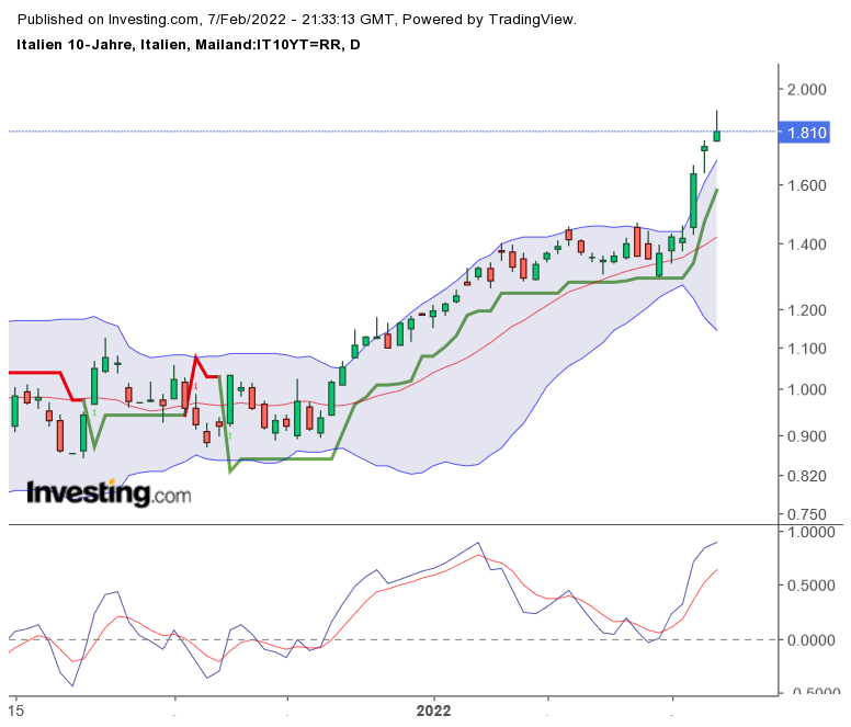 Die Renditen in Italien steigen weiter, IT 10 Jahre invst.ly/xc406
