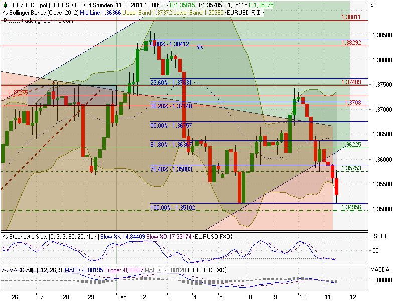 Theoretisch müsste man nach dem Ausverkauf des Euros von einer Long-Bewegung ausgehen. Da aber der Dollar die klassische Krisenwährung ist (wieso eigentlich?) und keiner weiß was am WE in Ägypten abgeht, würde ich erstmal meine Euros in Dollar münzen.