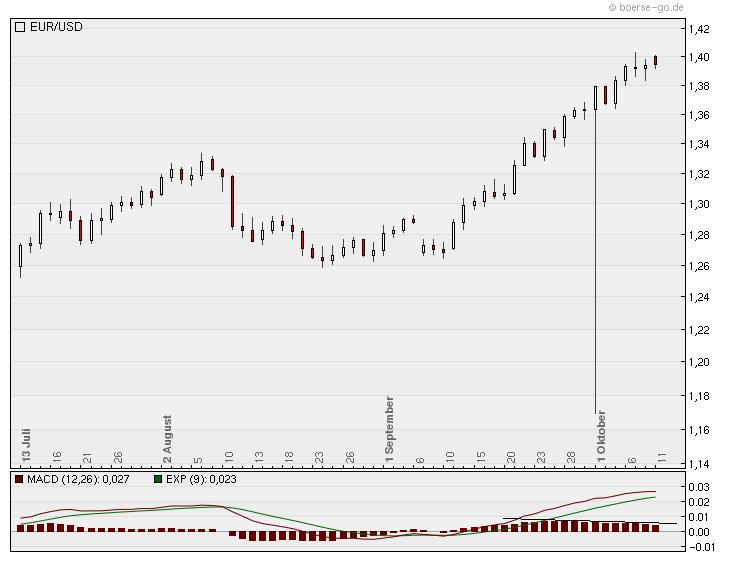 Nein, da bin ich mir auch sicher, dass das nicht heute oder morgen passieren wird. Momentan ist es sehr schwer eine Richtung vorauszusagen, der Aufwärtstrend ist weiterhin bis an die 1,36 intakt. Kurz-/mittelfristig sind die 1,4040 und 1,44 die Kursziele für den Shorteinstieg, dies ist aber als sehr spekulativ zu bewerten.
