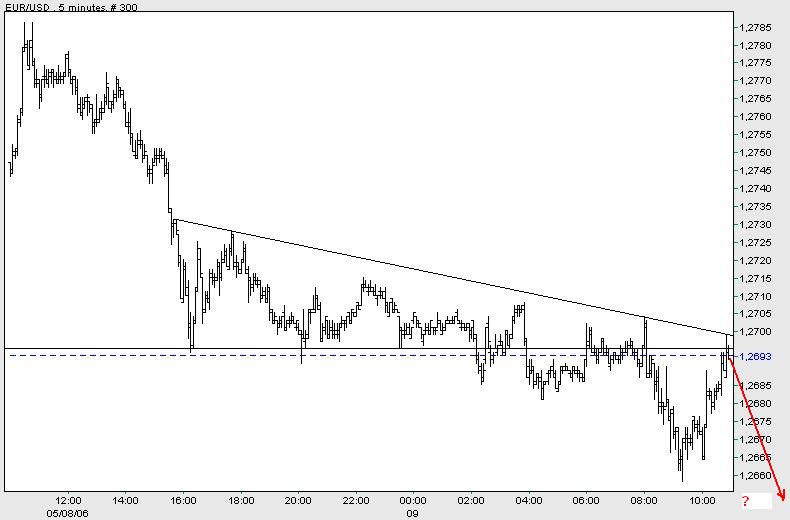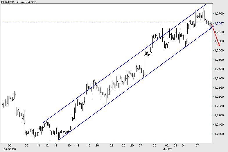 ..., das Zeug haben die Abwärtskorrektur von EUR/USD zu beenden, scheint fraglich. Die überaus starke Auftragsentwicklung in der deutschen Industrie, die am Montag für Februar und März gemeldet worden war, konnte schließlich auch nicht für Auftrieb sorgen. Auch die US-Großhandelslagerbestände gehören zu den weniger beachteten Konjunkturdaten. Daher stellen risikobewusste Marktteilnehmer die technische Lage in den Vordergrund und verkaufen am Dienstag eine Zwischenerholung auf 1,2710 mit Kaufstopp bei 1,2740 und Kursziel bei 1,2640. Die Handelsspanne kalkulieren wir heute zwischen 1,2630 und 1,2720.