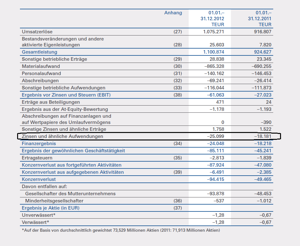 Mensch Kollege, es kann auch positive Zinsen geben, denk mal drüber nach, und außerordentliche Erträge, aber unterm Strich ist Nordex mit einem KGV von 30 bei einem Kurs von 30 unterbewertet.