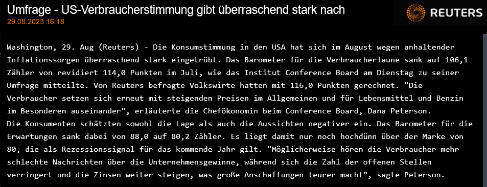 7.  Rückgang des US-Konsumentenvertrauens und weniger Konsum wegen der