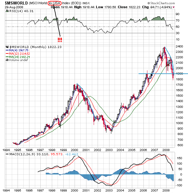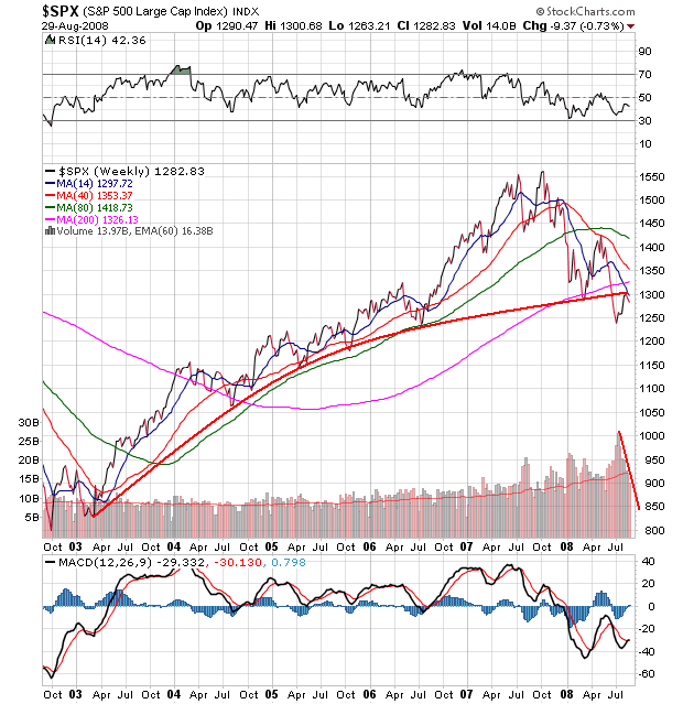 Some continue to argue that the Bear Stearns failure and the bailout of Fannie Mae (FNM) and Freddie Mac (FRE) are a sign of the bottom. I'm having a hard time believing that, since the credit crisis is not just a housing crash. It is also a mortgage crisis and a credit crunch that could easily overflow into the commercial real-estate markets and even filter down to credit-card holders. If you bail on your home loan, it is doubtful the credit-card holders are likely to keep paying on that debt when they could wipe it all out in bankruptcy.