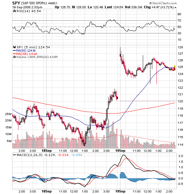 Wir machen einfach die RTC-Lösung: Resolution Trust Corporation. Da sind die Worte Lösung und Vertrauen drin, das kommt immer gut. Und geschickt platzieren muss man das Ganze natürlich auch. Zufällig mal wieder vor einem Verfalltermin für Futures und Optionen. Nein, liebe Leser, es KANN ja nur ein blanker Zufall sein, dass Diskontsenkungen, Milliardenspritzen und andere plötzlich aus dem Hut gezauberte „Lösungen“ unserer Helden immer direkt vor einem Terminbörsen-Verfalltermin bekannt gegeben werden und so nur zufällig versuchen den Anlegern klar zu machen: Short gehen ist böse. Pfui. Das hast du nun davon!