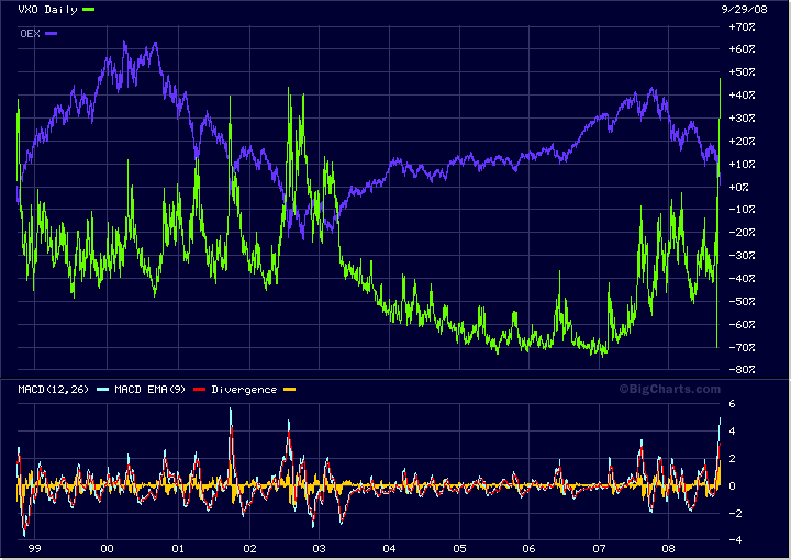 Ich möchte damit nicht in Abrede stellen, dass es an Katjuschas "SPX-Long-Einstiegsmarke" von 1070 - einer charttechnisch zweifellos sehr wichtigen - einen markanten Abpraller geben könnte. Auch wenn die Bush/Paulson-Kleptokratie am Donnerstag den Pseudo-Rettungsplan noch nachträglich durchwinkt, wäre dies für einen kurzen "hiccup" nach oben gut. Doch im aktuellen, von blanker Angst getriebenen Markt dürften hypernervösen Bullen solche Anstiege nutzen, um mit hellblauem statt dunkelblauem Auge ihre Posis auszudünnen, und Shorts werden dann erneut zu drücken beginnen. Kennzeichen eines Bärenmarkts ist, dass jeder Anstieg eine Verkaufsgelegenheit darstellt (das Gegenteil des von 1982 bis 2000 so erfolgreichen "Dip-Buying"). Erst wenn dies Alle begriffen haben, gibt es die nächste Überraschung - dann "nach oben". Doch solche Lernprozesse verlaufen zäh, eher über Jahre. Die meisten Leute halten sich - oft viel zu lange - an Patentrezepte, die sich in der Vergangenheit bewährt hatten.