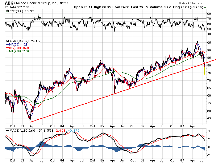 Wir müssen noch einmal rekapitulieren: Durch die Diskussionen um den US-Immobilien- und Kreditmarkt verliert man zu schnell den Überblick. Sie erinnern sich, ich warne seit geraumer Zeit davor, dass nach und nach die fundamentalen Gründe, die für eine Fortsetzung der Rallye gesprochen haben, wegbrechen. Auf der einen Seite versiegt durch die höheren Zinsen in den USA nach und nach die Liquidität. Der Markt hatte jedoch eine Weile darauf getradet, dass die Zinsen in den USA wieder sinken werden, was bisher jedoch nicht passiert ist. Zum Anderen hat die Börse auf eine stärkere US-Wirtschaft spekuliert, aber auch das ist mittlerweile eingepreist. Eher steht zu befürchten, dass sich unter anderem auch aufgrund des hohen Ölpreises das Wirtschaftswachstum in den USA schwächer wird. Der hohe Ölpreis könnte sich auf die Inflation durchschlagen, so dass sogar wieder steigende Zinsen möglich sind. Nicht nur dann wäre eine Stagflation denkbar.