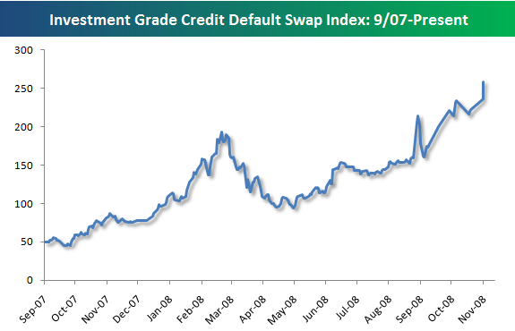 Am Markt führten die Nachrichten zu Turbulenzen. Die Ausfallversicherung (CDS) für CMBS höchster Bonität stieg um 161 auf 714 Basispunkte. Das heißt, die Kosten für eine Versicherung einer solchen Spezialanleihe von zehn Mio. Dollar stiegen auf jährlich 714 000 Dollar. Dies zeigt, dass am Markt mit deutlich steigenden Ausfallraten bei CMBS gerechnet wird. Diese waren einer Studie der Citigroup zufolge bereits im Oktober von 0,66 Prozent im Vormonat auf 0,78 Prozent gestiegen.