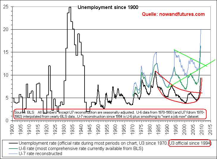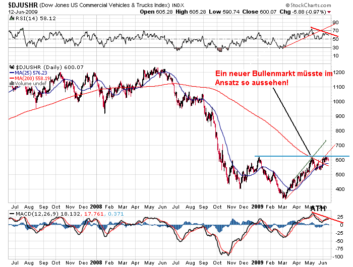 Immerhin hat die private (Netto-)Sparquote von quasi null auf - fast - normale 5,7 Prozent des Einkommens im April zugenommen. Nur dass für eine durchgreifende finanzielle Genesung noch mal eine Verdopplung der US-Sparquote angesagt wäre, bei weiter zurückhaltender Bautätigkeit, damit auch echte Finanzierungsüberschüsse erzielt werden können. Und dass zudem die positiven fiskalpolitischen Effekte auf das Einkommen im Laufe des zweiten Halbjahres nachlassen. Da kann man nur hoffen, dass die jüngste Verlangsamung des Beschäftigungsabbaus anhält. Dass jener Teil der nominalen US-Einzelhandelsumsätze, der direkt in die Berechnung des BIP einfließt, im April und Mai um annualisierte 1,7 Prozent unter dem Niveau des ersten Quartals lag, verheißt wenig Gutes - zumal der Ölpreis bereits wieder da ist, wo er beim Ausbruch der Finanzkrise war.