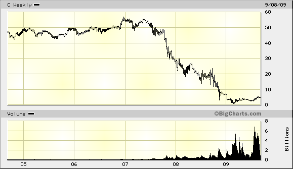 Chart von Citigroup seit 2005. Der Crash ist schon durch...