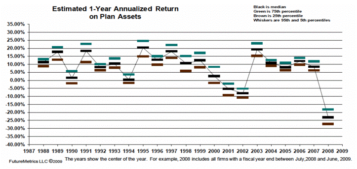 From a total dollar liability standpoint, only 32.4% of the funds were 100% or better funded in 2007. That fell to 6.3% in 2008. That means that 92.7% of corporate pension funds are under-funded.