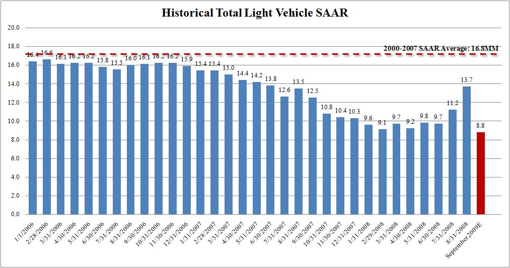 My discomfort about strenuously overbought and moderately overvalued conditions overlaps with skepticism about the U.S. economic “recovery,” which appears to be nothing but an artifact of government spending, while intrinsic economic activity remains weak. Stimulus induced “strength” is unlikely to propagate because, as I've noted before, economic recoveries are invariably led by expansion in debt-financed forms of spending such as gross domestic investment and durable goods. These classes of spending tend to lead other forms of economic activity by nearly a year, and it is difficult to expect this in an environment of heavy continued deleveraging pressure. Rather than abating, foreclosures and mortgage delinquencies are setting further records (pressured even more by continued net job losses), and we have now hit the point where Alt-A and Option-ARM resets are beginning (after a lull in the reset schedule since March). We know that post-crash markets feature partial recoveries followed by a very extended period of sideways movement. To expect an entirely different result in this instance – to assume that this is a typical post-war recovery and that everything is back to normal – seems hopeful to say the least.