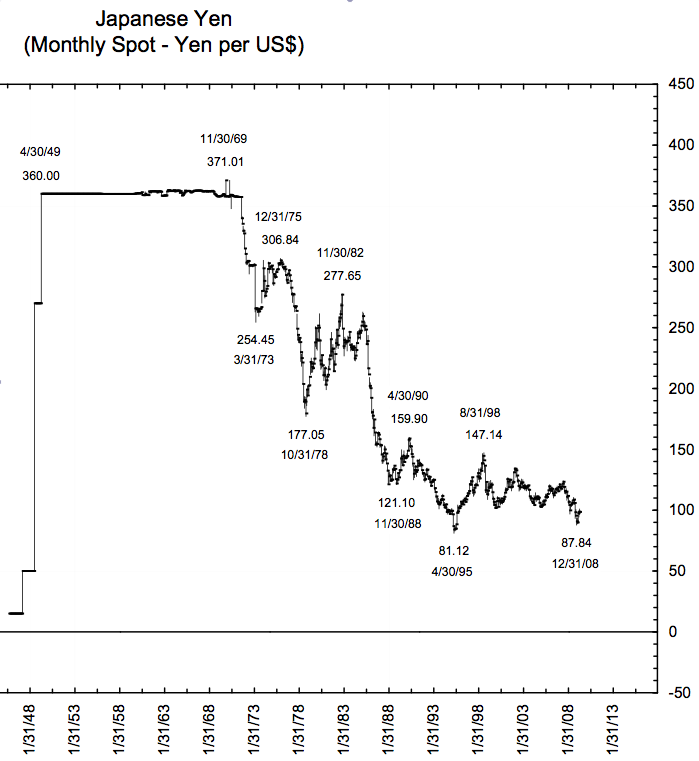 USD/JPY=200 gab's also schon mal. Zugegeben genau dann, als die Japan-Inc. brummte und sich mit niedrig gehaltenem Yen zum Exportmeister aufschwang. Und jetzt soll der Kurs wieder dahin?