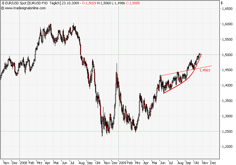 Man sollte daher die sensationellen Anstiege bei den "anstehenden Hausverkäufen" (pending home sales) mit gebotener Vorsicht zur Kenntnis nehmen. Viele Leute unterzeichnen die Haus-Kaufverträge nur, um die Zulage "für lau" abzusahnen. Die Differenz zwischen der Zahl der Kaufvertragsabschlüsse und der der faktischen Käufe wird immer größer. Ungeachtet dessen setzt sich die Aktien-Rallye wegen der "guten Housing-Zahlen" ungebremst fort.