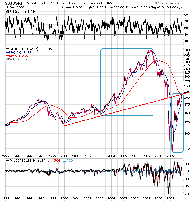 Auch die künstliche - und temporäre - Nachfrage aus der Hauskaufzulage von 8000 Dollar verschleiert die Probleme am US-Hausmarkt: Banken sitzen auf einem Schatten-Inventar von sieben Millionen Häusern, mit deren Zwangsvollstreckung zur Schonung der eigenen Bilanz noch nicht begonnen wurde. Die Hoffnung ist, dass es der US-Regierung gelingt, die Hauspreise durch Zulagen, Hype und Statistik-Mummenschanz wieder "aufzublasen" - parallel zur sonstigen Vermögenswertinflationierung inkl. Aktien. Sie dürfte sich jedoch nicht erfüllen, weil der Markt auf Überangebot langfristig IMMER mit Preisrückgängen reagiert. Temporäre Stützen können die Gesetze der Marktwirtschaft nicht entkräften.