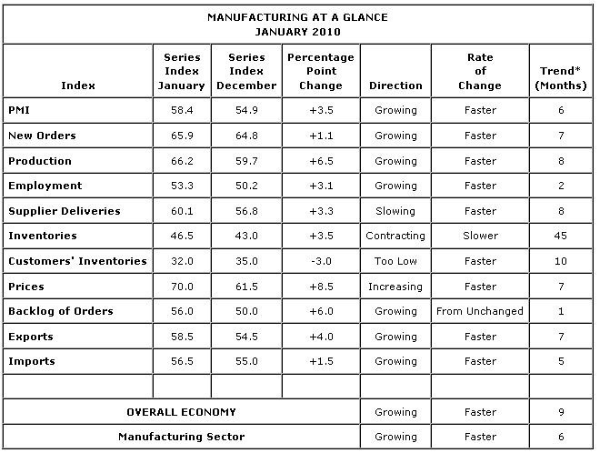 U.S. Jan. ISM factory index 58.4% vs.54.9% Dec.