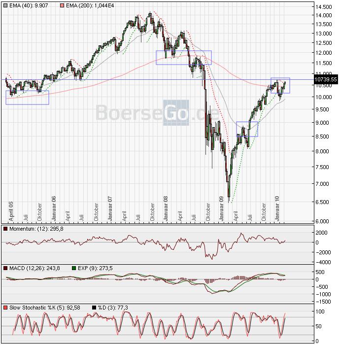 Wenden wir uns nun lieber dem Chart zu. Die Euphorie endete 2007 bei "Ah!", wo Abwärtswelle A einsetzte. Sie führte ballistisch zum Punkt "Bäh!". Dort begann im März 2009 eine lustlose technische Erholung (Bäh!-Welle) bei dünnem Volumen und ohne jegliche Investoren außer Zockerbanken. Normalinvestoren hatten nämlich ihre gesamten Bestände bereits in Welle Ah!, spätestens am Punkt Bäh!, entsorgt - und sich geschworen, zeitlebens keine Aktie mehr anzufassen, nicht mal mehr mit der Maus.