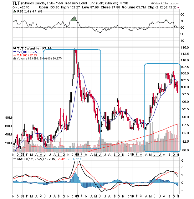 The market was hitting those highs last April when there were still visions of a V-shaped recovery and the Fed was so confident over a sustained reflationary cycle that it was discussing exit strategies. Now the economy is skating on pretty thin ice and the Fed is now re-opening the liquidity floodgates. As Gary Shilling is fond of saying, all the Fed creates are reserves; it is up to the banking system to churn that into a reflationary pro-growth credit creation cycle.
