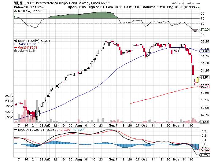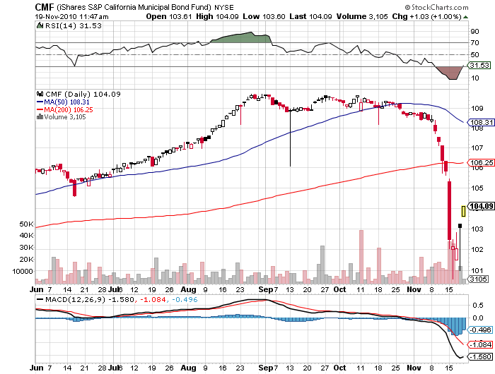 Der Chart unten zeigt den schwer angeschlagenen Chart des iShares ETF auf kalifornische Muni-Bonds.