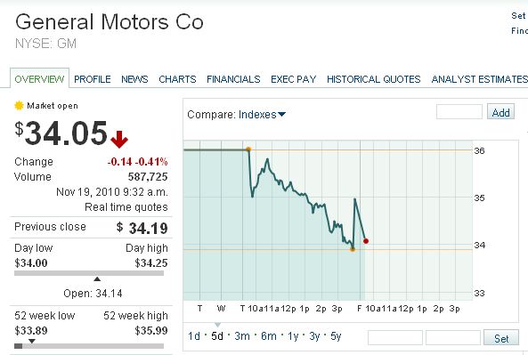 Heute scheint sich der Abverkauf fortzusetzen. Viele ehemalige Bondhalter wurden durch die Pleite zu GM-Aktienbesitzern "wider Willen". Sie wollten schon damals die Aktie nicht, sonst hätten sie ja nicht die Bonds gekauft.