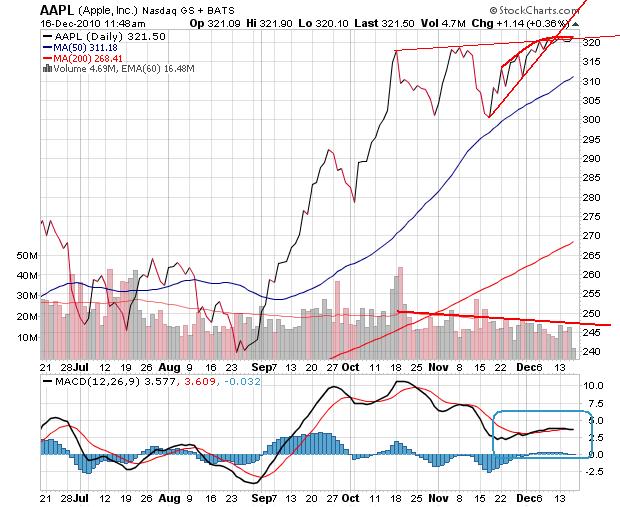 Aus charttechnischer Sicht dürfte sich der Höhenflug von Apple im wahrsten Sinne des Wortes dem Ende "zuneigen". Das Stichwort heißt hier: massiver Momentumschwund.