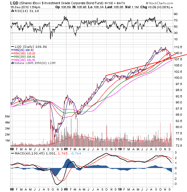 Ähnliches gilt für Corporate Bonds. Die aktuelle Entwicklung von LQD gibt zu Besorgnis Anlass.