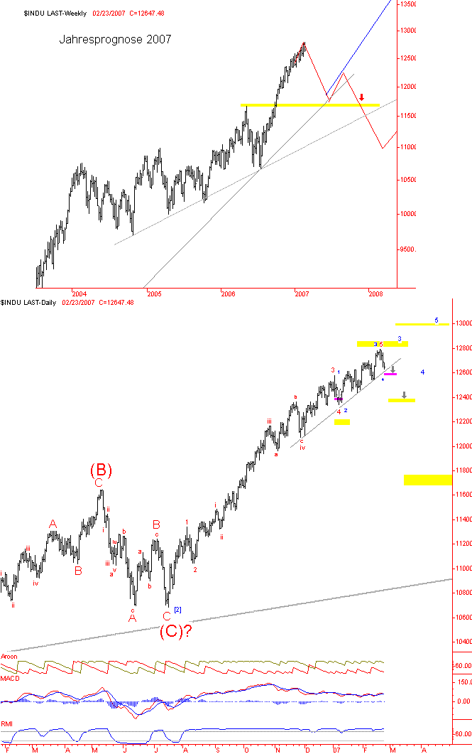 Während des US – President - Day in den USA hat es auf dem Bloomberg Channel eine wohl interessante Bullen – Bären - Debatte gegeben. Hardcore – Contrarian Peter Schiff, welcher die Bären - Position innehatte, stellte die für die anwesenden Teilnehmer verblüffende These auf, das "the bull market in US stocks over the last few years is largely an illusion based on the falling US dollar." Ich hatte vor einiger Zeit ähnliche Bedenken bzgl. des ATH Dow Jones bereits im Doomsday – Bären – Thread geäußert, da 2/3 der dort enthaltenen Werte heute weit unter ihren Höchstständen aus den Jahren 1999-2001 notieren.