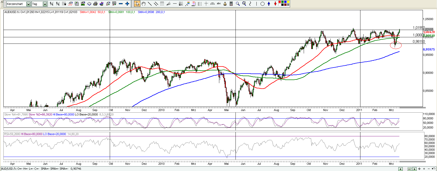 Nach der Seitwärtsphase (Abbau der vorherigen Übertreibung): Langsam aber kontinierlich bergauf.