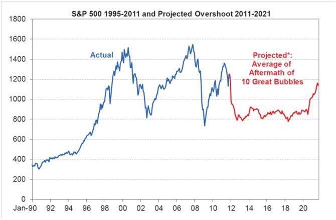 Wir haben also im Nahrung/Rohstoff/Assetbereich eine politisch gewollte Pseudo-Inflation (Assetpreisaufblasung). Die schleichende Dollarentwertung durch die Hintertür (via Fed-Festplatte) führt gleichzeitig zu Massen-Kaufkraftverlust bei weitgehend konstanten Löhnen, was in einer Konsumgesellschaft wie USA nachfragebremsend und mithin mittelfristig deflationär wirkt. In dem Sinne ging das Konzept Bernankes, mittels QE "Deflation zu bekämpfen", NICHT auf.