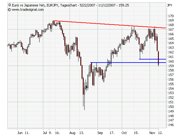 Gleichzeitig machen die Vereinigte Staaten trotz anders lautender Beteuerungen keine Anstalten, die eigene Währung zu stärken. Angesichts des schlimmsten Einbruchs am Markt für Wohnimmobilien seit 16 Jahren hat die amerikanische Notenbank Federal Reserve Ende Oktober vielmehr die Zinsen gesenkt.