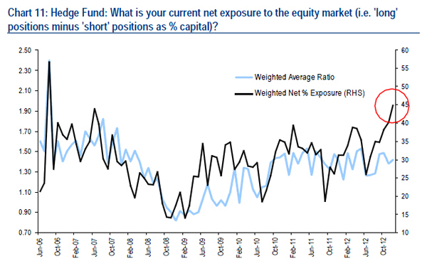 30-year U.S. sovereign yield doubles in 2013 [wäre inflationär und passt nicht zu den sonstigen Prognosen - außer der Markt rechnet damit, dass USA zeitgleich mit anderen Staaten vor die Hunde geht. Ich glaub eher, die Amis fallen dank "Leitwährung" als letzte - A.L.] –- The Federal Reserve’s low-interest-rate policy forces investors to leave fixed income and substitute bonds with stocks. [Wie soll das der DAX um -30 % fallen?? - A.L.] As the bond market is far larger than the equity market a 10% reallocation to stocks should amplify equity fund inflows by around 30%. This leaves to higher yields in the U.S. and marks the beginning of a decade-long outperformance by stocks over bonds.