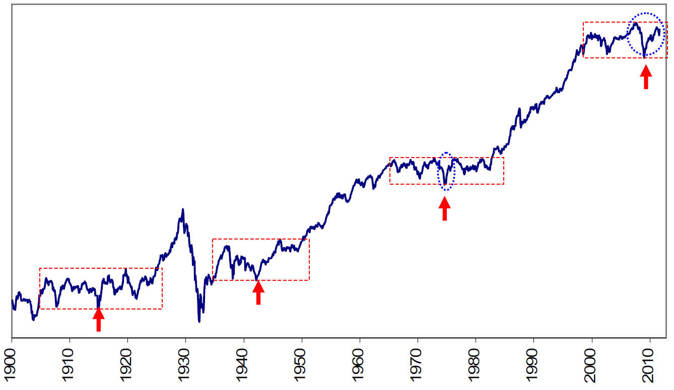 4. We don"t have a lot of examples of Secular Bear Markets — see the chart below — but it is a decidedly small sample set of only 4 over the past century.