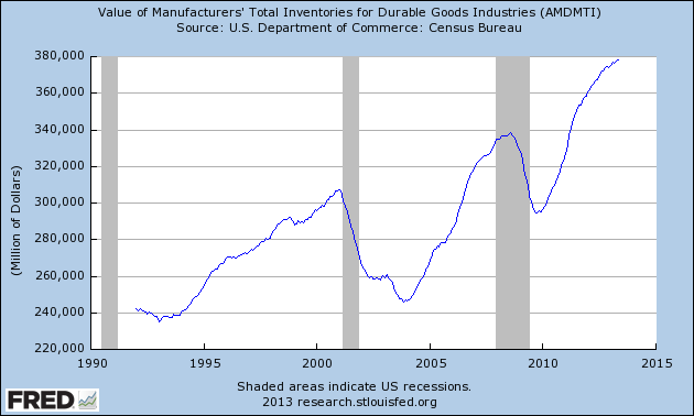 Diese finden sich primär im Aufbau von Lagerbeständen. Per 05/13 betrug der Wert der Gebrauchsgüter auf Halde fast 380 Mrd. $.