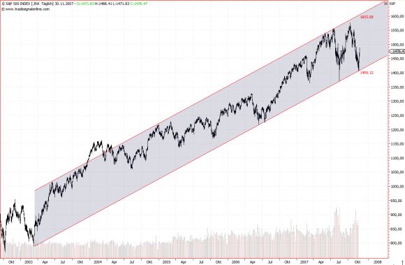 Diese verbalen Zinssenkungen, die schon zuvor (am Mittwoch) von Fed-Fize Donald Kohn zu hören waren, haben interessanterweise in letzter Minute verhindert, dass der S&P500 seinen Aufwärtstrend verletzt.
