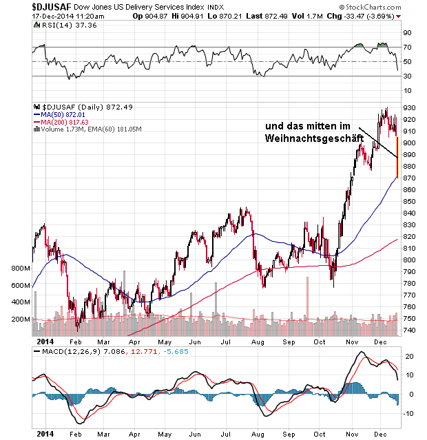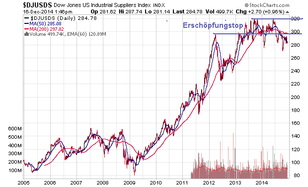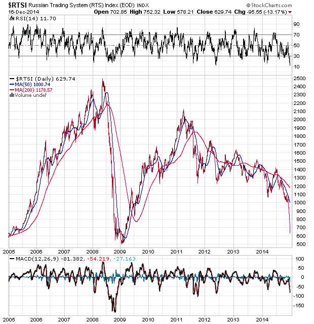 Nun, stellen wir das Worst-Case-Szenario einer russischen Staatspleite mal kurz weit hinten an und werfen einen Blick auf den Crude-Öl-Chart. Vor dem kirchturmartigen Ausbruch in 2007/08 war ca. drei Jahre lang der Bereich von 50-55 US-Dollar eine scheinbar wichtige und oft angelaufene Unterstützung, die auch dementsprechend mehrmals getestet wurde. Ob hier möglicherweise eine für die Haupt-Ölproduzenten wichtige Kostendeckungslinie verläuft, ist sicherlich recht schwierig zu beurteilen, als Möglichkeit wäre dies jedoch durchaus in Betracht zu ziehen.