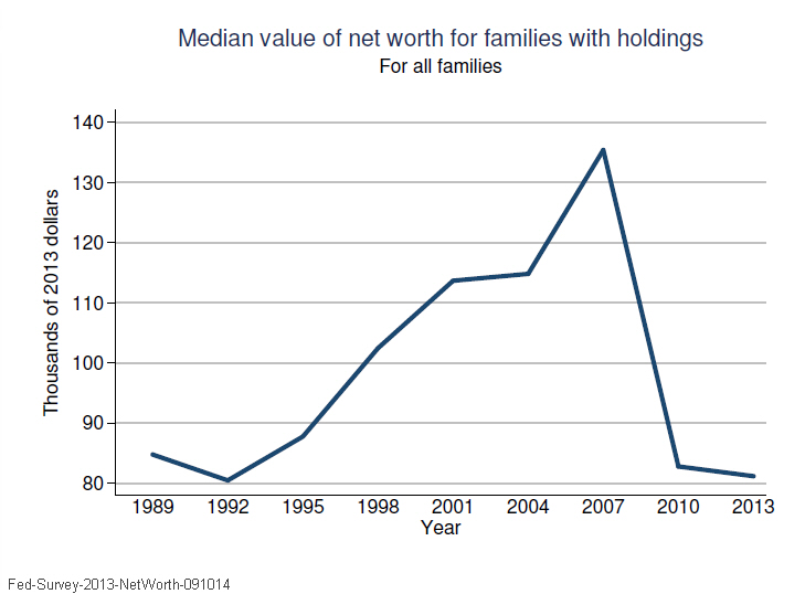 Despite ultra-loose monetary policies over the past several years, incomes adjusted for inflation have fallen for the median U.S. family. [A.L: siehe dazu auch: dieses BT-Posting] With the benefits of monetary expansion going to a small share of the population and wage growth stagnating, incomes have been essentially flat over the past 20 years.