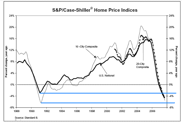 "We reiterate that real estate deflations are unique and have never ended well for the consumer, the credit market or the economy. We can identify only five periods post WWII when the real value of housing assets turned negative on a year-on-year basis. All of these time periods inevitably included a consumer downturn. Maybe it will be different this time, but we fail to see why," Mr Rosenberg concluded.
