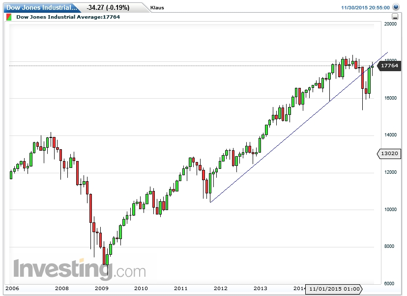 ob es in den USA zu einer wirklichen Zinswende kommt, so wie es ja Goldman Sachs prognostiziert, die bereits 4 Zinserhöhungen durch die Fed in 2016 ausgemacht haben wollen. Es ist mMn auch noch nicht einmal als gesichert anzusehen, ob die Fed bereits am 16. Dezember die "homöopathische" Erhöhung von 0,25 Basispunkten vornehmen wird, wenn im Gegensatz dazu Herr Draghi weiterhin Geld druckt, als gäbe es kein Morgen mehr.