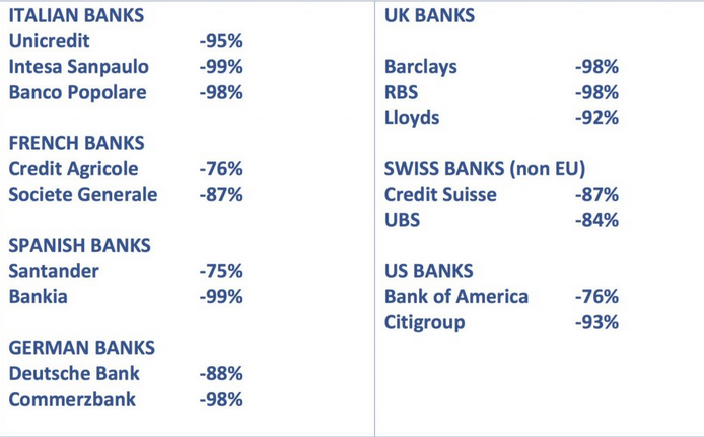 Rechnet man den Hebel 3 raus, hätten die in NUGT enthaltenen Goldaktien, wenn alles mit rechten Dingen zugehen würde, 2011 rund 82 Mal höher stehen müssen als heute. Das ist keineswegs der Fall. So stand z. B. Barrick Gold (Chart unten), die mit 8,51 % das Top-Holding in NUGT ist, 2011 in der Spitze bei 55 Dollar. Heute steht Barrick Gold bei 22. Das ist "nur" ein Wertverlust um den Faktor 2,5.