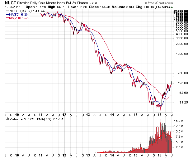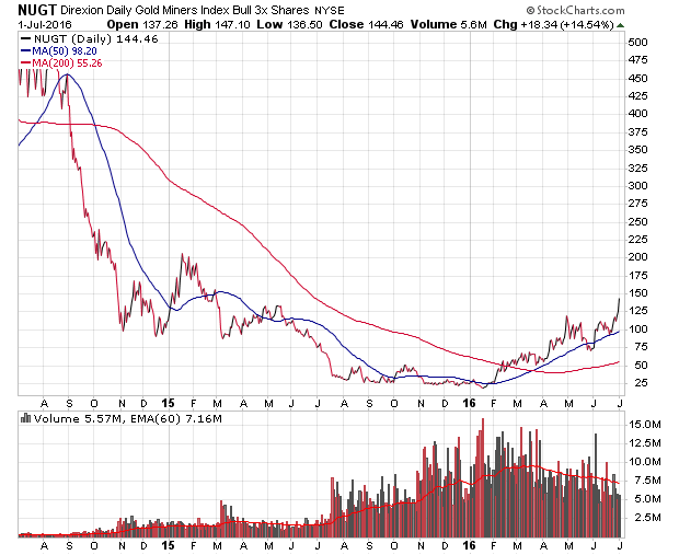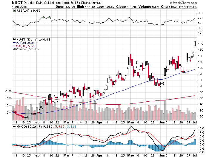 Ich halte die Gold-Rallye für eine politisch getriebene Brexit-Blase und erwäge, nach erkennbaren Austoppen in NUGT short zu gehen.