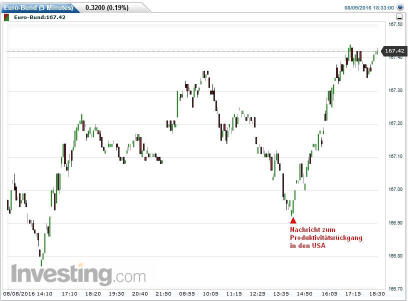 Produktivät sinkt ==> FED handelt - niedrige Zinsen, evtl. QE ==> Aktien steigen