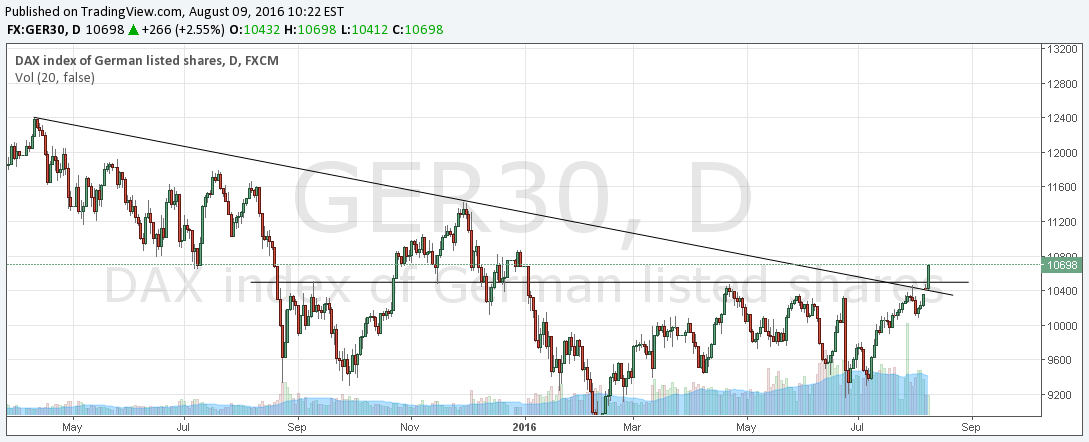 Aktien steigen ==> Charttechnischer Widerstand überschritten ==> Aktien steigen